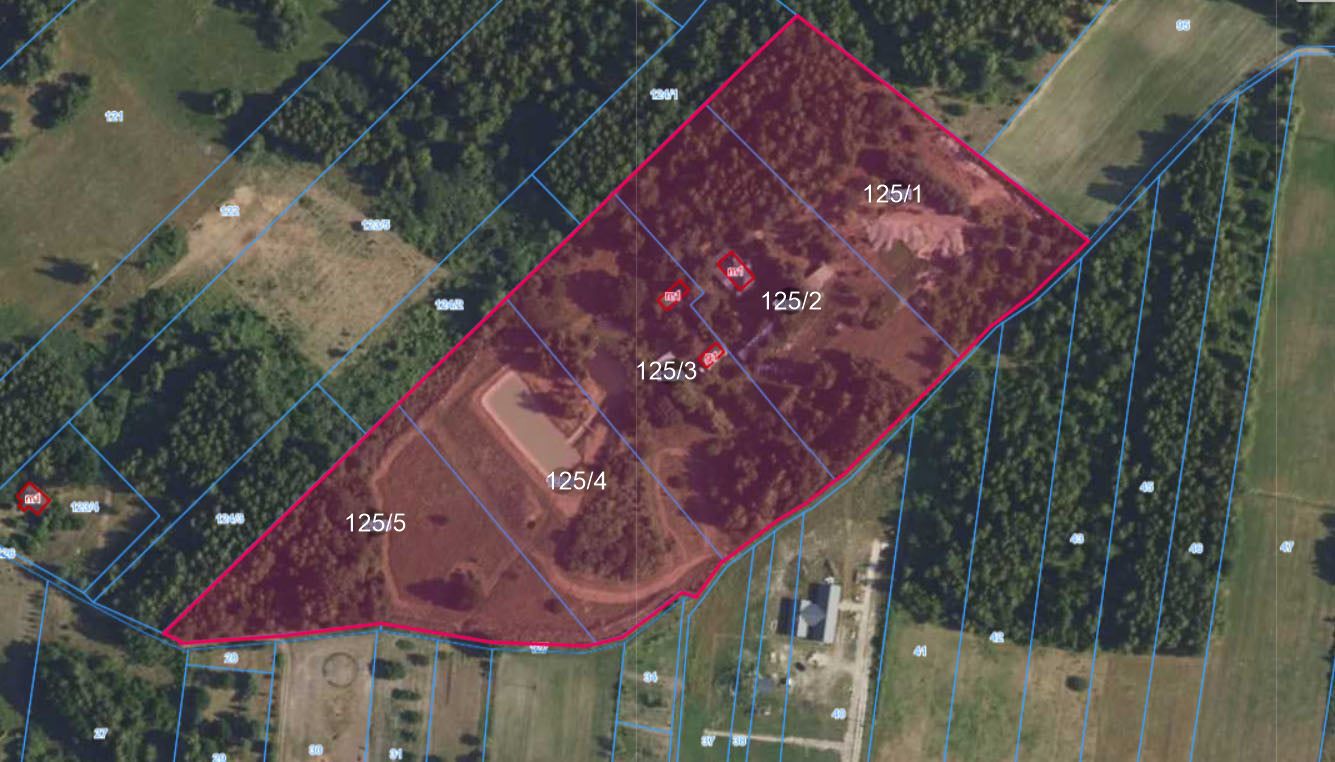 Teren podzielony na 5 działek po ok.9tys mkw każda.